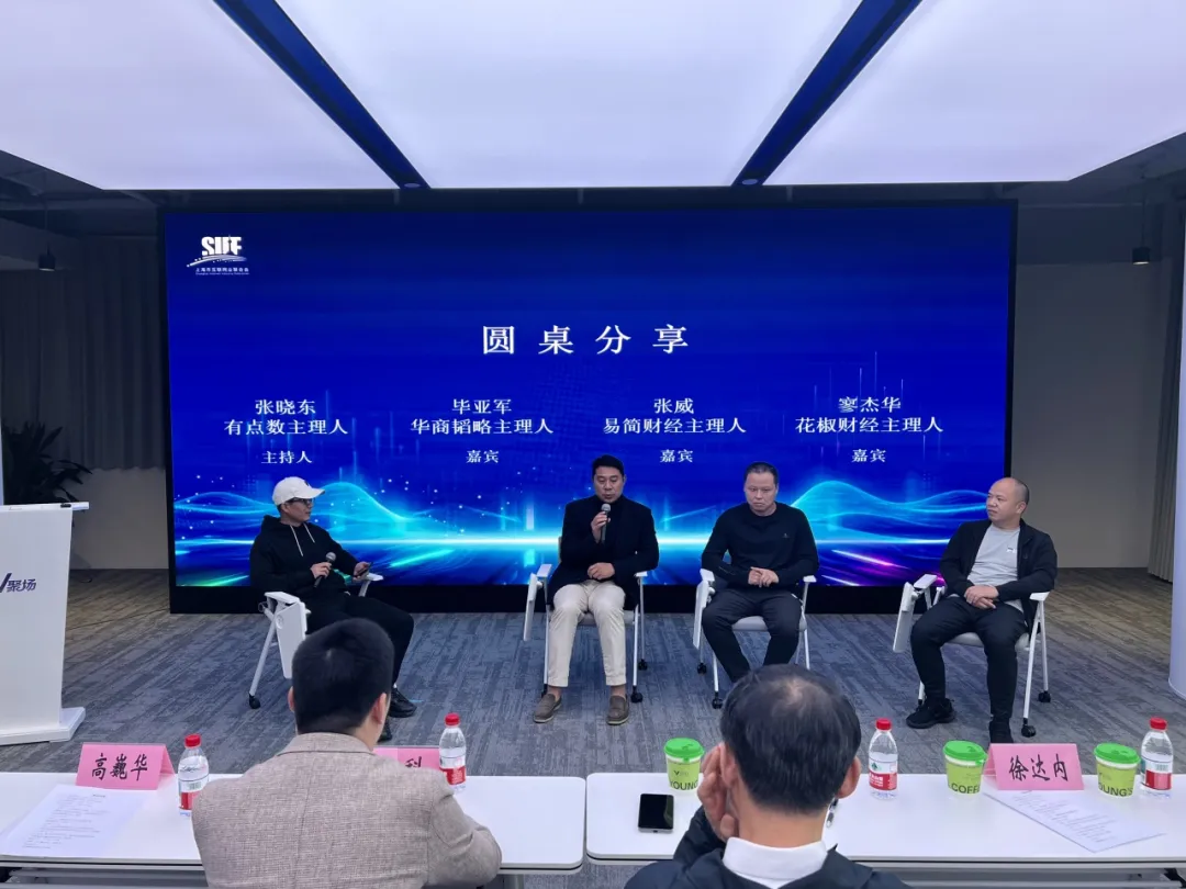 圆桌分享环节由有点数主理人张晓东主持,邀请华商韬略主理人毕亚军、易简财经主理人张威、花椒财经主理人寥杰华,共同围绕北京、广州、深圳三地财经科技自媒体的协同发展、内容创作等议题展开深入对话。嘉宾们结合行业痛点与发展机遇,提出多项切实可行的合作思路,为行业发展拓宽视野。